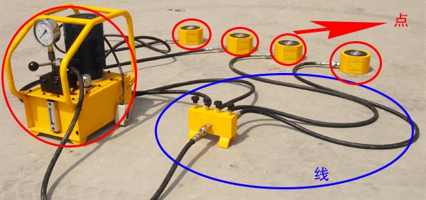 “點(diǎn)”即檢查系統(tǒng)的動(dòng)力源——液壓泵站和執(zhí)行元件——薄型液壓千斤頂、電動(dòng)機(jī)。然后檢查“線”——?jiǎng)恿υ吹綀?zhí)行元件之間經(jīng)過的管路和控制元件。